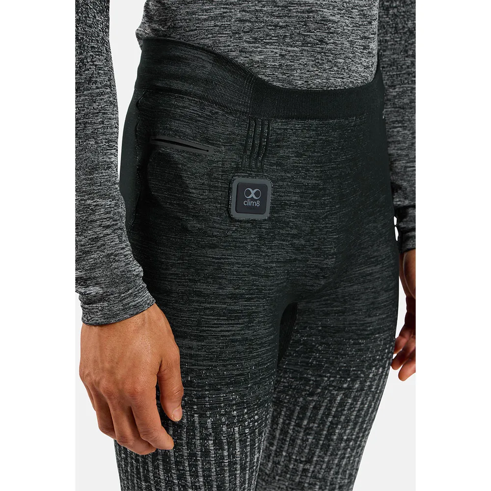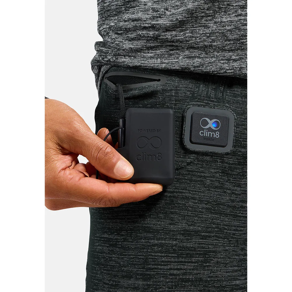 De I-Thermic X-Warm basislaag tights van Odlo hebben een geïntegreerd verwarmingssysteem dat je via je smartphone bedient.