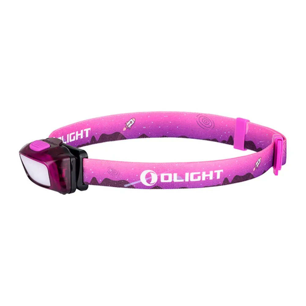 Hoofdlamp, compacte en zuinige roze LED hoofdlamp met 45 lumen vermogen en een maximaal bereik van 7 meter. De hoofdlamp kan 45º worden gekanteld, heeft een elastische nylon band en wordt gevoed door 2 AAA lithiumbatterijen die hem een maximale autonomie van 10 uur geven.
