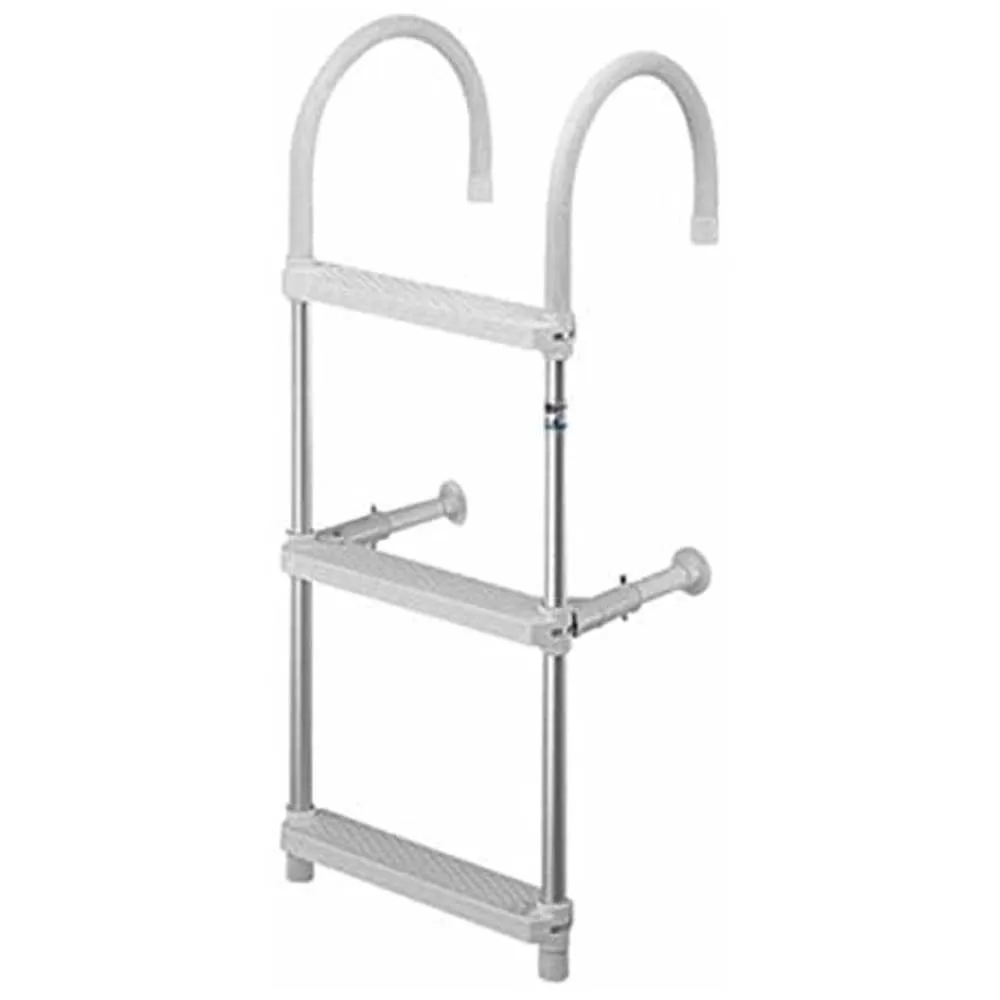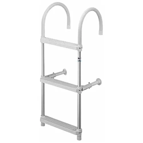 Opslag en gemak staan centraal in het ontwerp van deze ladder. Dankzij de innovatieve inklapbare haken kan de ladder worden ingeklapt tot een compact en slank profiel. Dit maakt het mogelijk om hem moeiteloos op te bergen in een kluisje of een aangewezen plek aan dek, waardoor waardevolle ruimte op uw boot wordt bespaard. Het slimme inklapmechanisme betekent dat hij in enkele seconden klaar is voor gebruik en biedt direct en praktisch toegang wanneer dat nodig is. Dit maakt het een van de meest veelzijdige en praktische ladders die beschikbaar zijn voor kleine tot middelgrote boten.