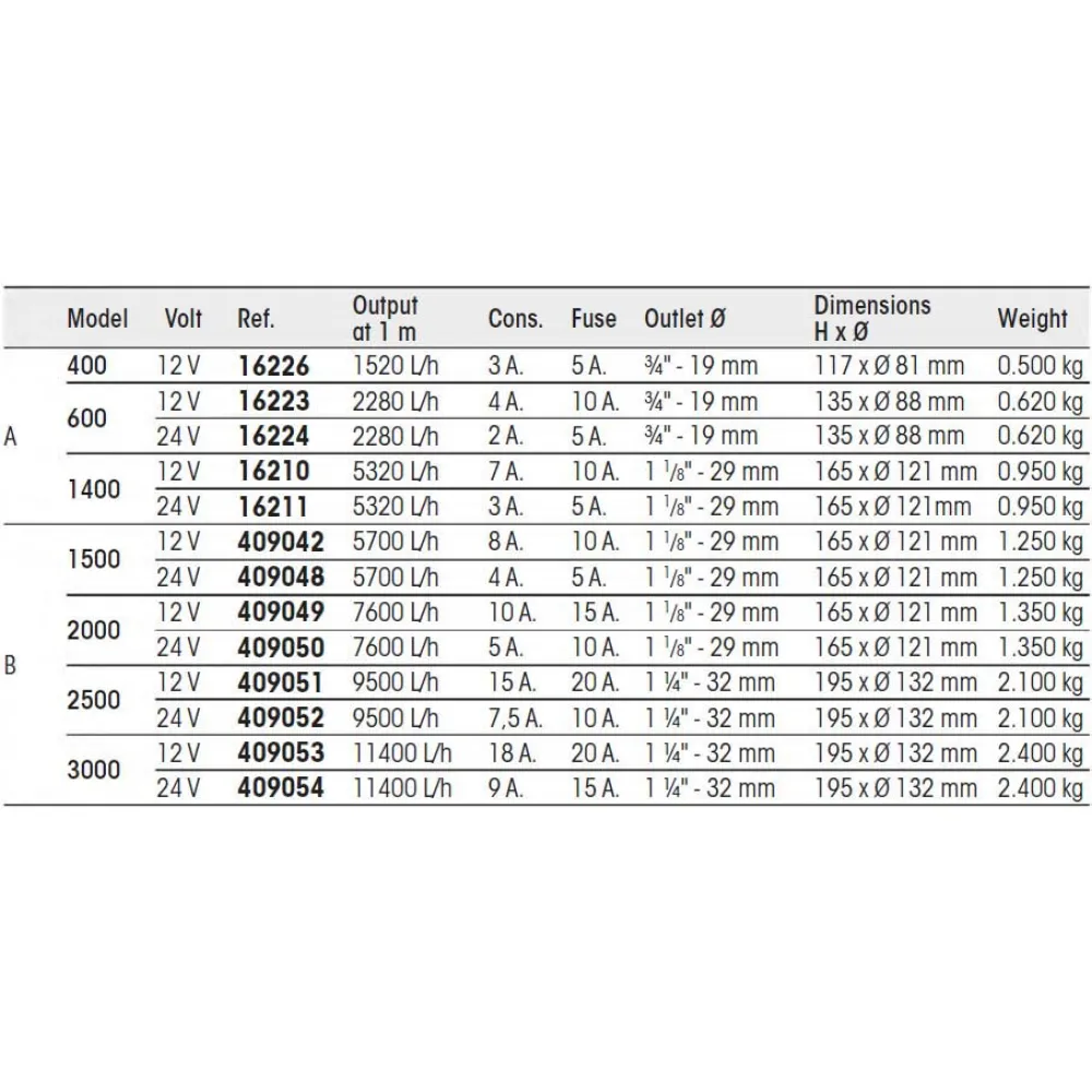 Kunnen worden omgezet in volautomatische pompen met toevoeging van een vlotterschakelaar.