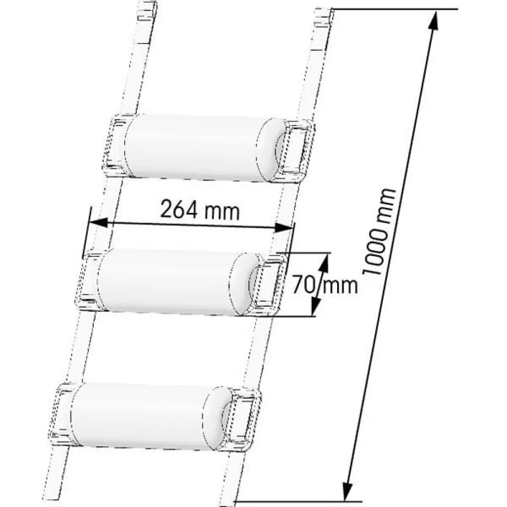 Biedt efficiënte bescherming tegen wrijven en schuren: past zich aan alle rompvormen aan, en meer in het bijzonder aan buisvormige ribvormen. Ook ideaal om de romp of de buizen van een rib te beschermen tijdens het vervoeren: steek gewoon de halvemaanstootkussens tussen de bootromp en de riemen die de boot op de trailer vastzetten.