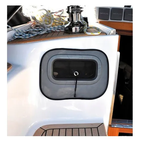 Mogelijkheid van bevestiging met zuignap of met magneet, van binnenuit positioneren op het glas van de patrijspoort of het luik.