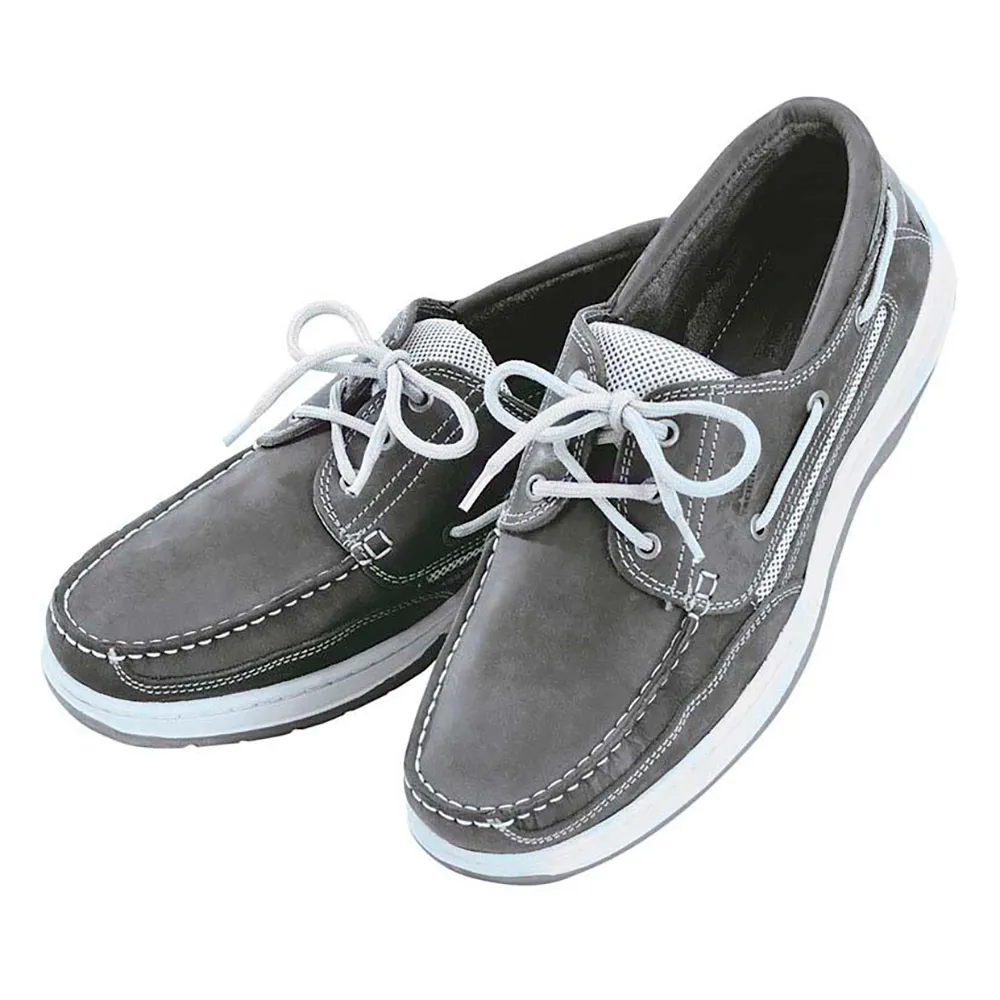 Features:- Flexible pull up kip leather with lateral mesh for increased breathability - Kip leather lining - Removable shock-resistant insole with antibacterial lining fabric - Extremely flexible 100% rubber sole with high lateral stability and drainage channels, for outstanding grip on wet decks - Highly resistant lateral sewing and nylon lace.