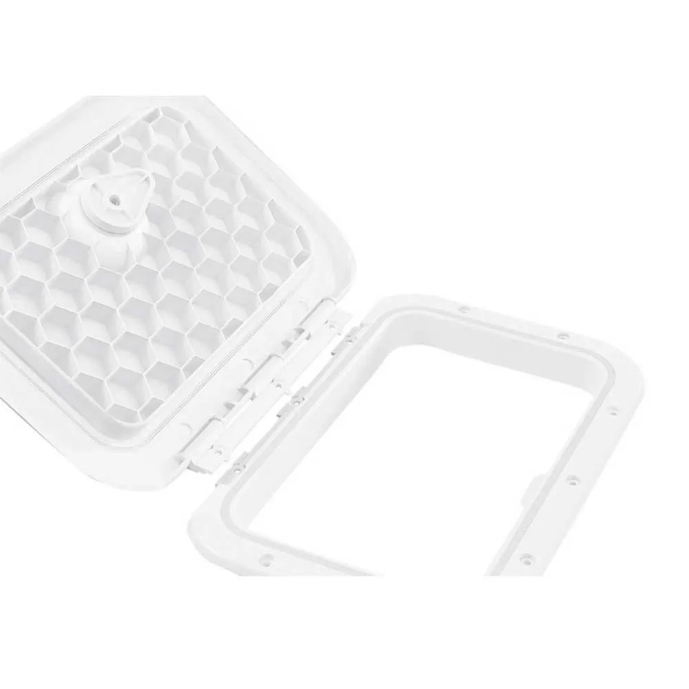 Ervaar superieure veelzijdigheid met het PLASTIMO Luik, ontworpen voor eenvoudige installatie en maximaal comfort voor de bemanning. De meest opvallende eigenschap is een demonteerbaar bovendeel, verwijderbaar met slechts een opening van 5° – ideaal voor ruimtes met beperkte hoogte. Kies uw toegang: een klassieke 180° draai of de optie voor een verwijderbaar luik, dankzij de meegeleverde dubbele scharnierset. Gemaakt van duurzaam, UV-bestendig ASA met een stijve honingraatkern, ondersteunt dit beloopbare luik 130 kg zonder vervorming en garandeert het een perfecte waterdichte afsluiting voor uw dek of wand