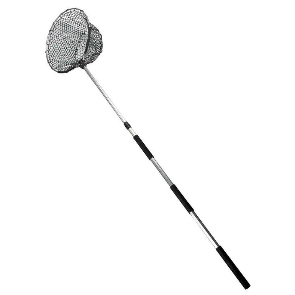 Aluminium telescoopsteel in 2 elementen. Drijvend net dus geen risico op verlies als het in het water valt bij het vissen per boot. Afneembare kop, speciaal gaas en gelamineerd.