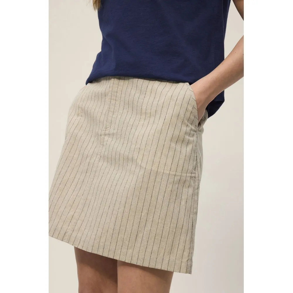 De REDGREEN Nan rok Light Sand Stripe is een stijlvolle en veelzijdige aanvulling op elke vrouwelijke garderobe. Deze rok heeft een prachtig gestreept patroon in een lichte zandkleur, waardoor hij een chique en trendy uitstraling krijgt. De rok heeft een comfortabele elastische tailleband voor een perfecte pasvorm en valt net boven de knie voor een flatterend silhouet. Gemaakt van een zachte en lichtgewicht stof, is deze rok perfect voor warme dagen of kan hij worden gecombineerd met panty´s voor een meer gelaagde look bij koelere temperaturen. Of je hem nu combineert met een blouse en hakken of met een casual top en sneakers, de REDGREEN Nan rok is een must-have voor elke fashion-forward vrouw.