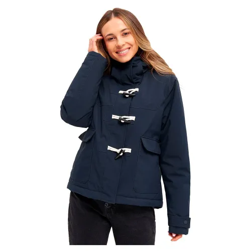 Gequilt logo geprint voering en klassieke duffle coat geïmiteerde hoorn knoppen en touw sluitingen.