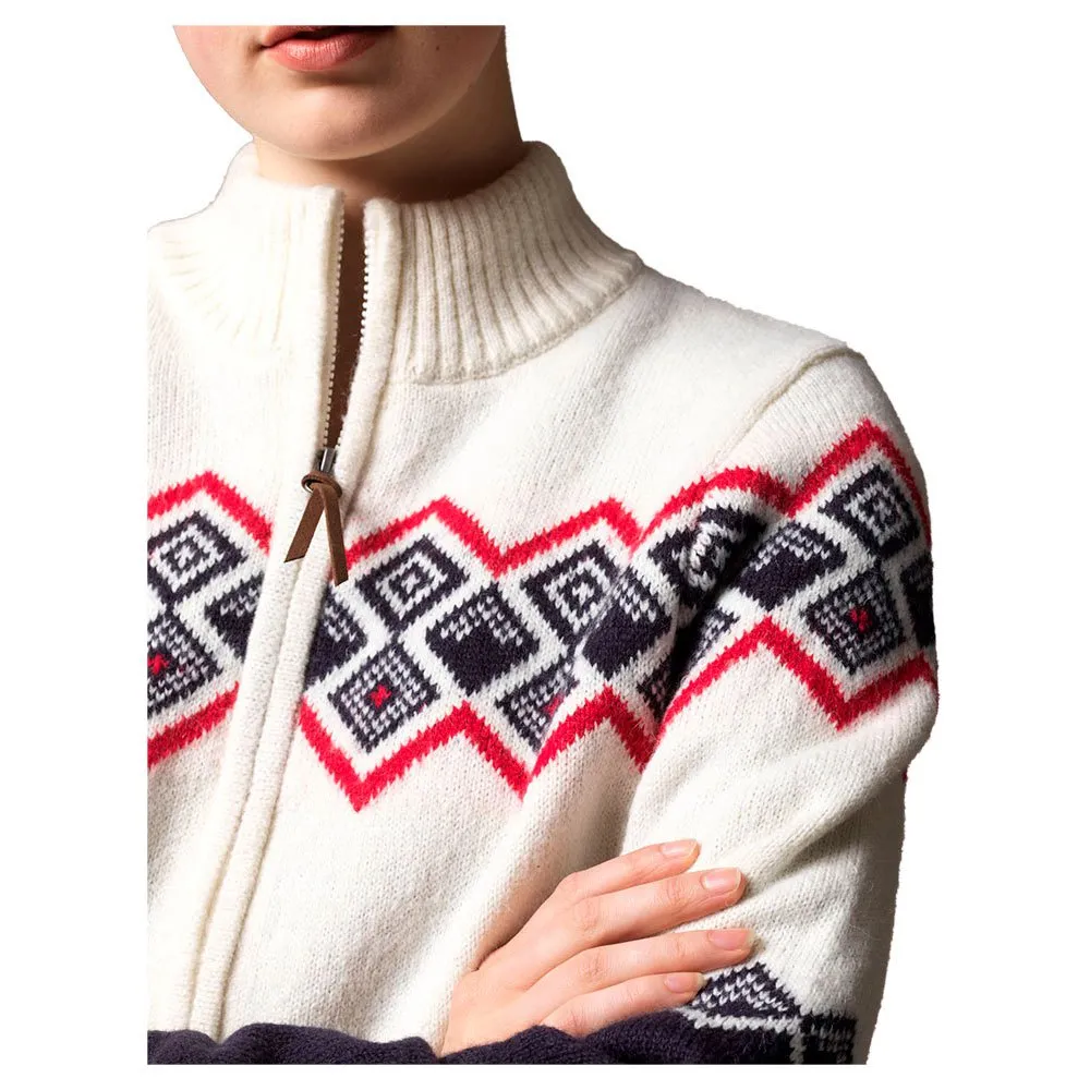7gg Wolmix Jacquard gebreide cardigan met rits en winddichte voering. 100% Polyester winddichte stretch voering.