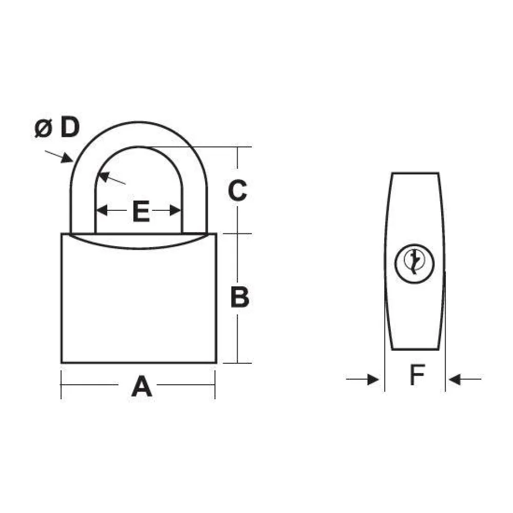 Voor een perfecte pasvorm en om compatibiliteit met uw overval, ketting of kluisje te garanderen, verwijzen wij u naar de gedetailleerde technische specificaties hieronder. Deze afmetingen specificeren de totale behuizingsgrootte en de kritieke beugelafmetingen, zodat u met vertrouwen het juiste slot voor uw specifieke toepassing kunt kiezen Specificaties: