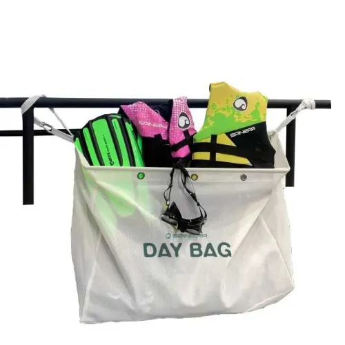 Praktische universele tas gemaakt van zeer duurzaam, waterdoorlatend mesh-materiaal. Met het flexibele montagesysteem, bestaande uit een verstelbare riem en roestvrijstalen karabijnhaak, kan de tas in een mum van tijd snel en eenvoudig aan boord worden bevestigd. Of het nu op het zwemplateau, een kikker of op de zijreling is. Bewaar er diverse uitrusting in, zoals reddingsvesten, duikuitrusting, wetsuits, stootwillen, enz., uitsluitend om te drogen of voor permanente opslag. Inclusief 3 rubberen sluitingshaken.