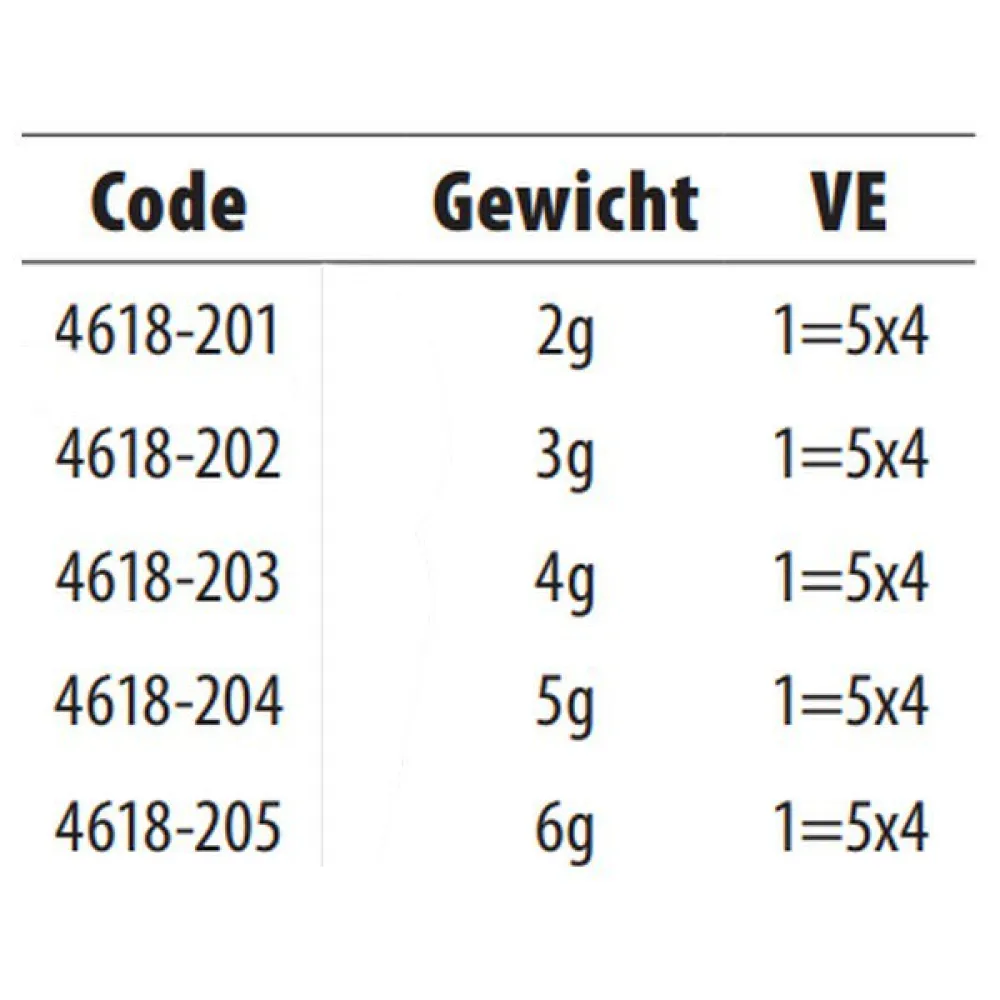 Beschikbare Gewichten: Een uitgebreid assortiment voor alle omstandigheden, inclusief 20g, 30g, 40g, 50g, 60g, 80g en 100g