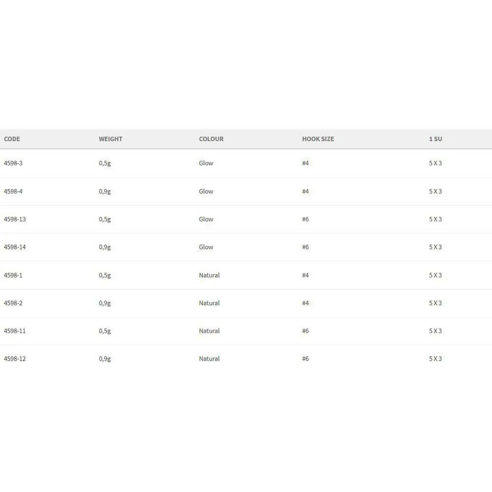 Nano Light Jigs voor het vissen op forel. Geassembleerd met behulp van ultrascherpe Gamakatsu F11-haken. Door de unieke montage met een siliconenkraal kunt u vissen met de wolfraamkraal vast of lichtjes bewegend, waardoor een smakelijk ratelend geluid ontstaat.