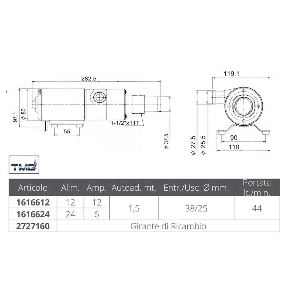 TMC Vermalerpomp 12V | Krachtige Oplossing voor Afvalwaterafvoer op Zee