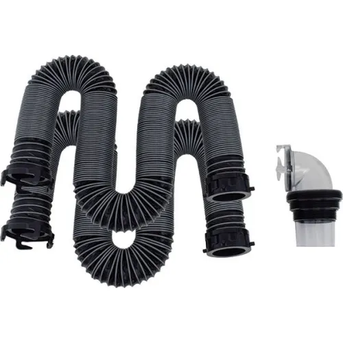 Inclusief twee rioolslangen met draaibare fittingen en een 90º universele riooladapter.24 mil.