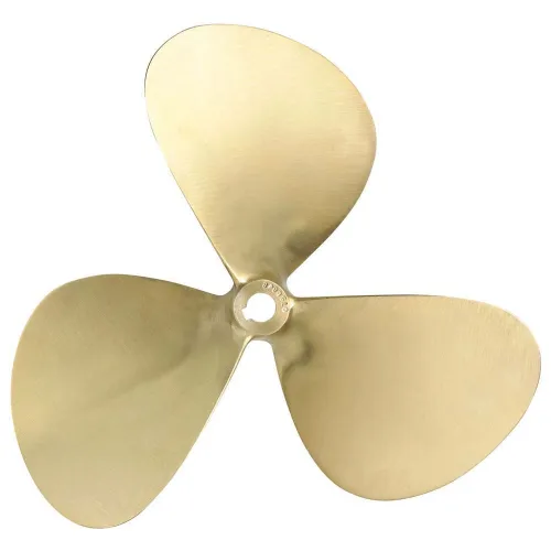 3-bladige mangaanbrons propeller, diameter 14”, steek 14´´. Schijfgebiedverhouding Fa/F = 0,55. Voor 25 mm assen met conus 1:10.