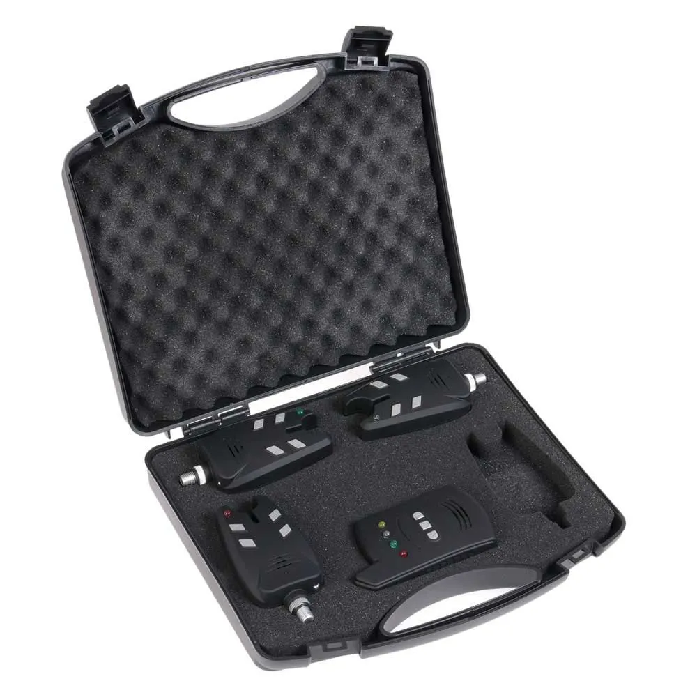 Koffer met 3 draadloze beetverklikkers en een ontvanger.
