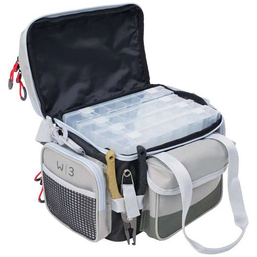 De W3 Lure Bag Plus houdt je kunstaas georganiseerd en je eten vers. Deze tas is voorzien van kunstaasdozen, hoofdcompartimentkoeler, verschillende vakken, klittenband-gereedschapsriemen en oversized ritsen, de perfecte tas voor oever- en bootvissen.