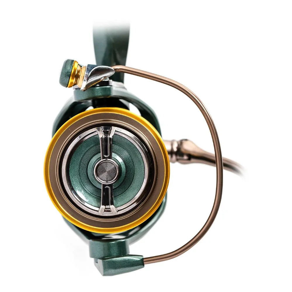 De producten van het populaire Wizard spinnenmerk zijn al bewezen vaardigheden van verschillende vissers. De Edge-reel, in 3 maten, is nu verkrijgbaar in deze lijn, die een nieuw niveau vertegenwoordigt, perfect passend bij Wizard spinhengels. Als resultaat van het Japanse ontwerp zijn exacte, betrouwbare en duurzame spoelen ontstaan, die goed passen in alle omstandigheden! Alle maten van de spoelen hebben een extreem licht, extra stevig grafietlichaam en zijn uitgerust met een extra lichtgewicht aluminium spoel. Hun uiterlijk is extreem schoon, wat volledig uniek wordt met de bronzen en goudkleurige spoel. De precieze, niet-plakkende voormicrorem ondersteunt de succesvolle pompen en de soepele werking wordt gegarandeerd door de 4+1 lager. Naast de gedraaide aluminium spoel is de handgreep natuurlijk ook van metaal, de grip en handgreep zorgen voor een extreem comfortabele grip, zelfs na honderden worpen, wat een eersteklas factor is voor een spinnenspoel. De maat 2000 is ook een perfecte keuze voor het vissen met extreem dunne gevlochten lijnen, zelfs met de grotere maten, het biedt een alternatief voor dikkere gevlochten lijnen als grotere roofdieren het doelwit zijn.