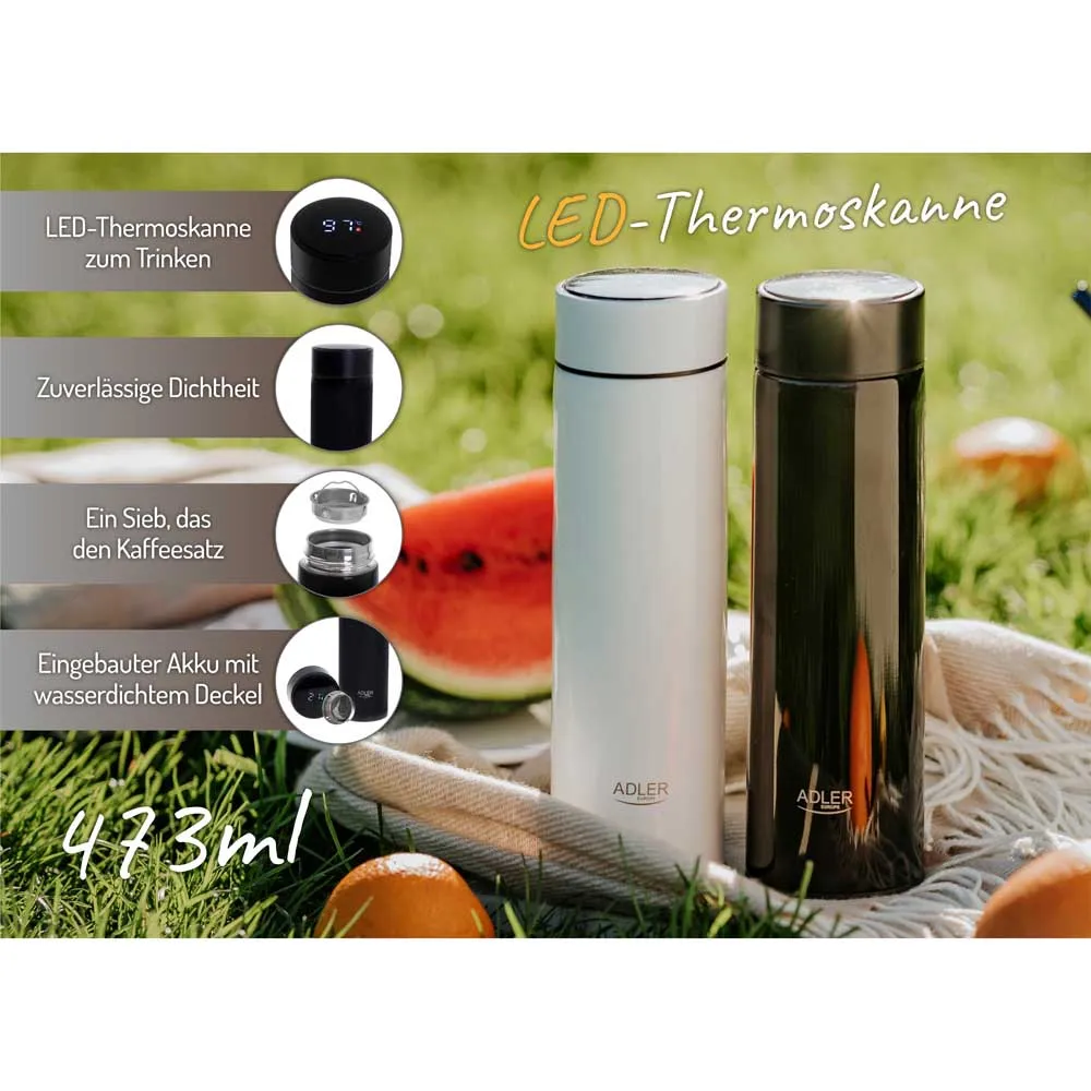 Produktbeskrivelse av Adler LED 473ml termosflaske