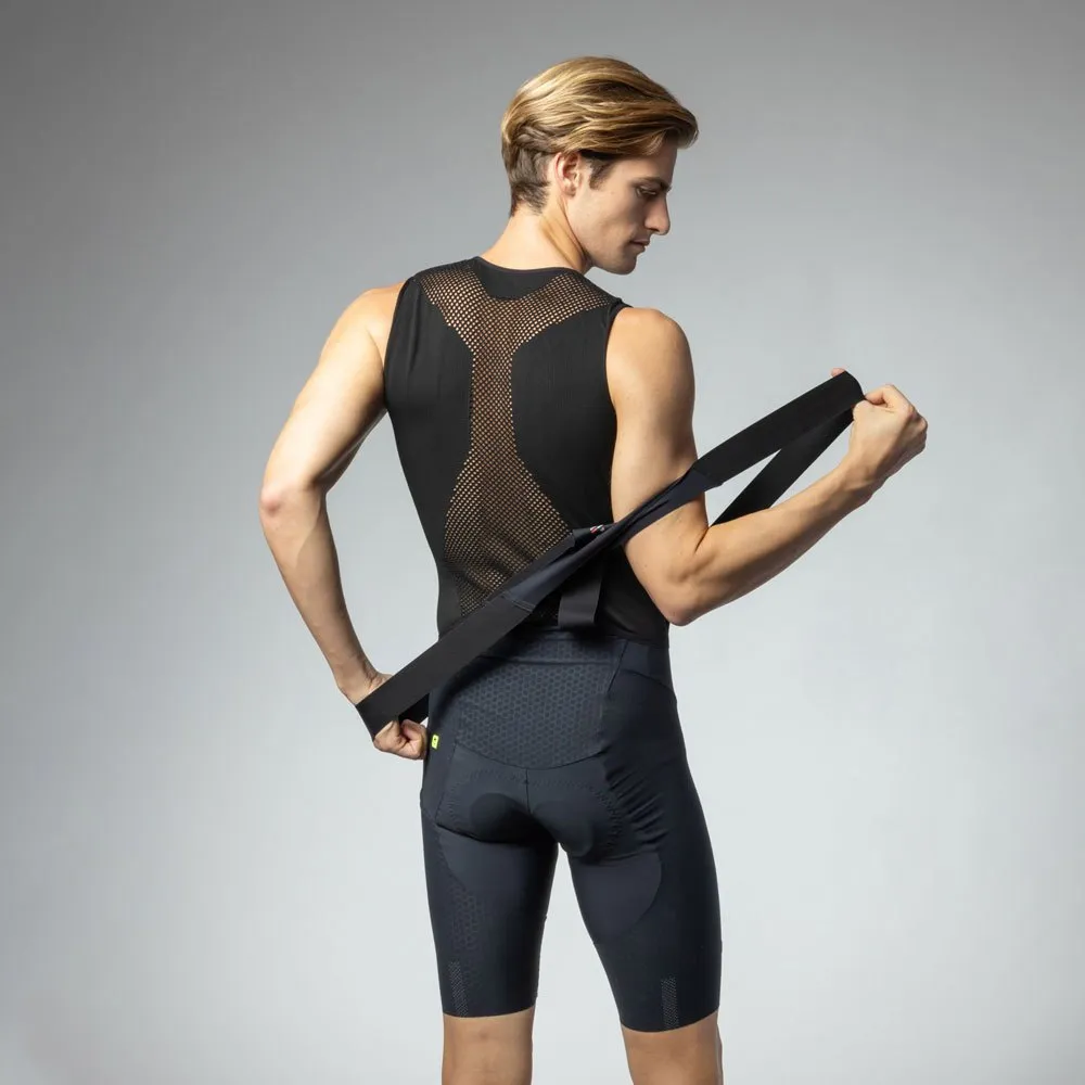 ALE S2 Summer Sleeveless Base Layer Black er et høytytende baselayer for menn designet for sykling i varmt vær. Laget av et lett og pustende stoff, transporterer denne ermeløse baselayeren bort fuktighet for å holde deg tørr og komfortabel under intense turer. Den formsydde designen gir en støttende og figursydd passform, mens den ermeløse stilen gir maksimal bevegelsesfrihet. Enten du sykler på landeveien eller stiene, vil dette baselayeren garantert gi ekstra komfort og ytelse til sykkelutstyret ditt.