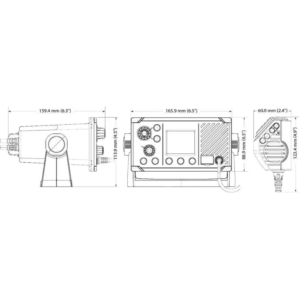 Se tydelig i lyst dagslys med høy kontrast svart på hvitt display og invertert hvitt på svart nattmodus. En dreieskive gjør kanalvalg enkelt, mens store knapper gir rask tilgang til andre nøkkelfunksjoner. Dedikert kanal 16-taster, funnet på både radioen og knyttnefikrofonen, gir øyeblikkelig tilgang til nødkanalen. En medfølger gimbal brakett gjør det enkelt å montere bord, overhead eller skott. Plussmonteringsinstallasjon er også mulig, med en enkel montering fra frontløsning, slik at den passer til lavprofil stilen på våre glassbroskjermer og tilbehør.