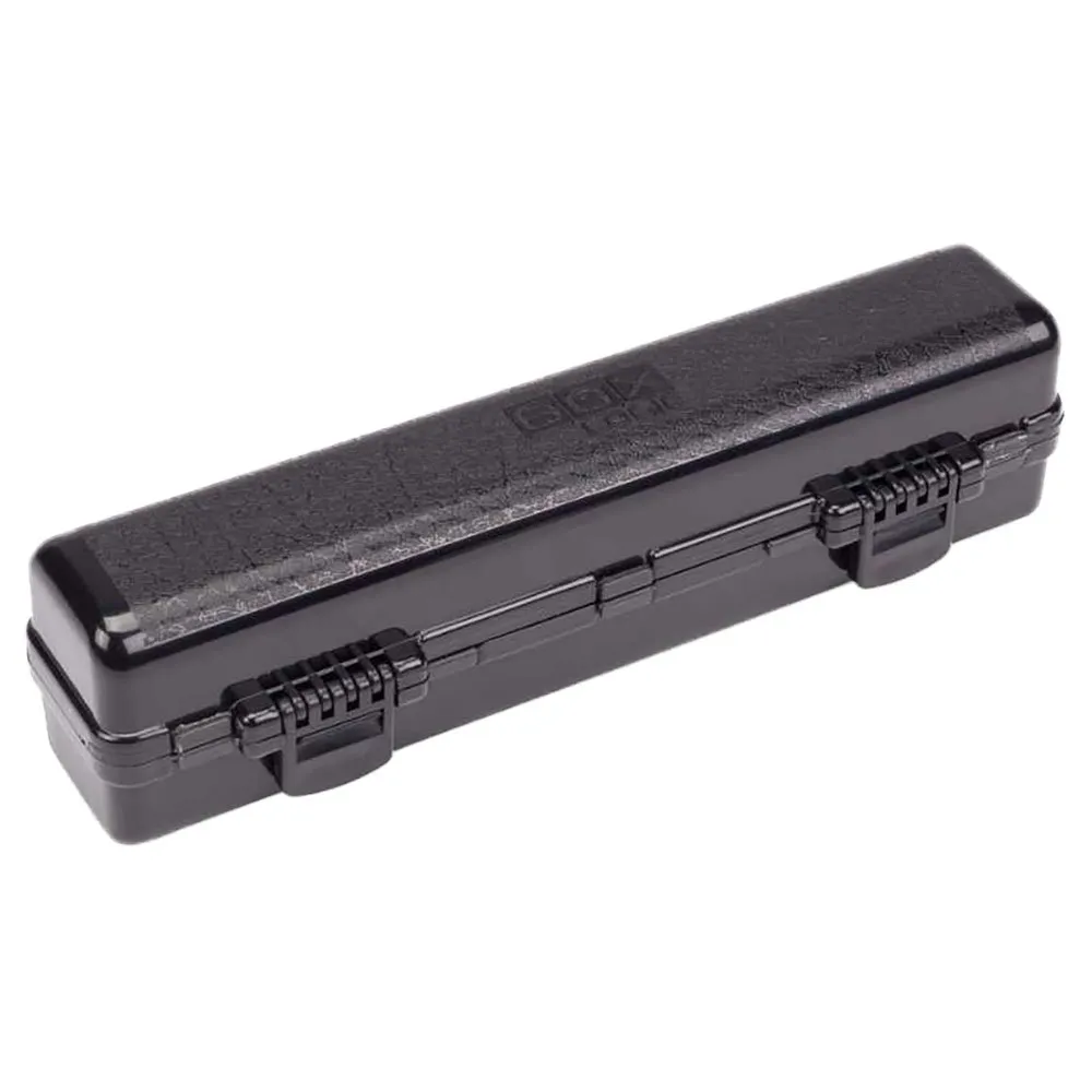 En praktisk tosidig oppbevaringsboks med ett rom i full lengde for nåler og andre agn- og riggverktøy med fem individuelle lokker for viktige TT -lignende hårstoppsparkelhylser og klipp som må holdes for hånden.