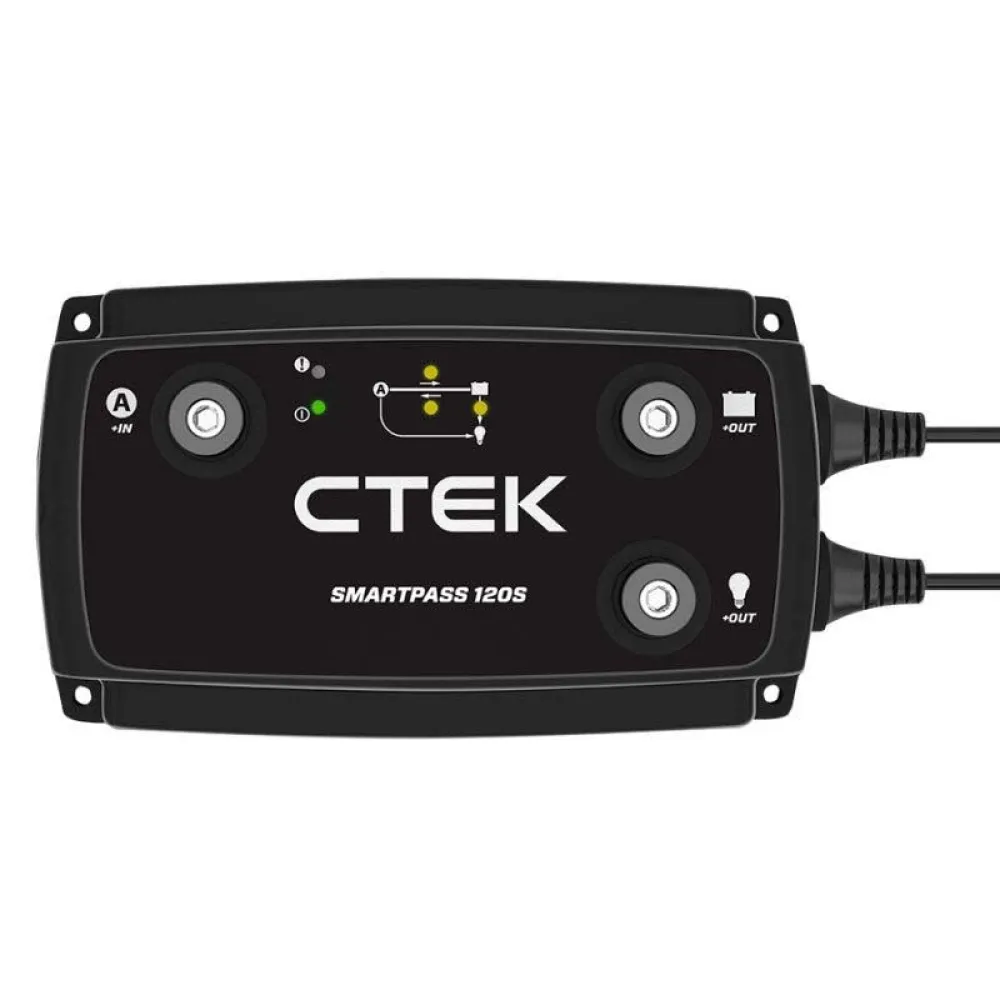 Smartpass 120S er den ultimate løsningen for alle som er avhengige av et sekundært batteri for kjøleskap, lys, vinsjer og annen krevende elektronikk. Den prioriterer strømfordeling, og forsyner først forbrukerne og dirigerer deretter den gjenværende generatoreffekten til å lade forbruksbatteriet ditt. Dette sikrer at utstyret ditt fungerer feilfritt uten å tappe det essensielle startbatteriet. For det ultimate strømoppsettet utenfor nettet, kombiner Smartpass 120S med en CTEK D250SE eller D250SA for en komplett, fullt integrert 140A strømstyringsløsning.