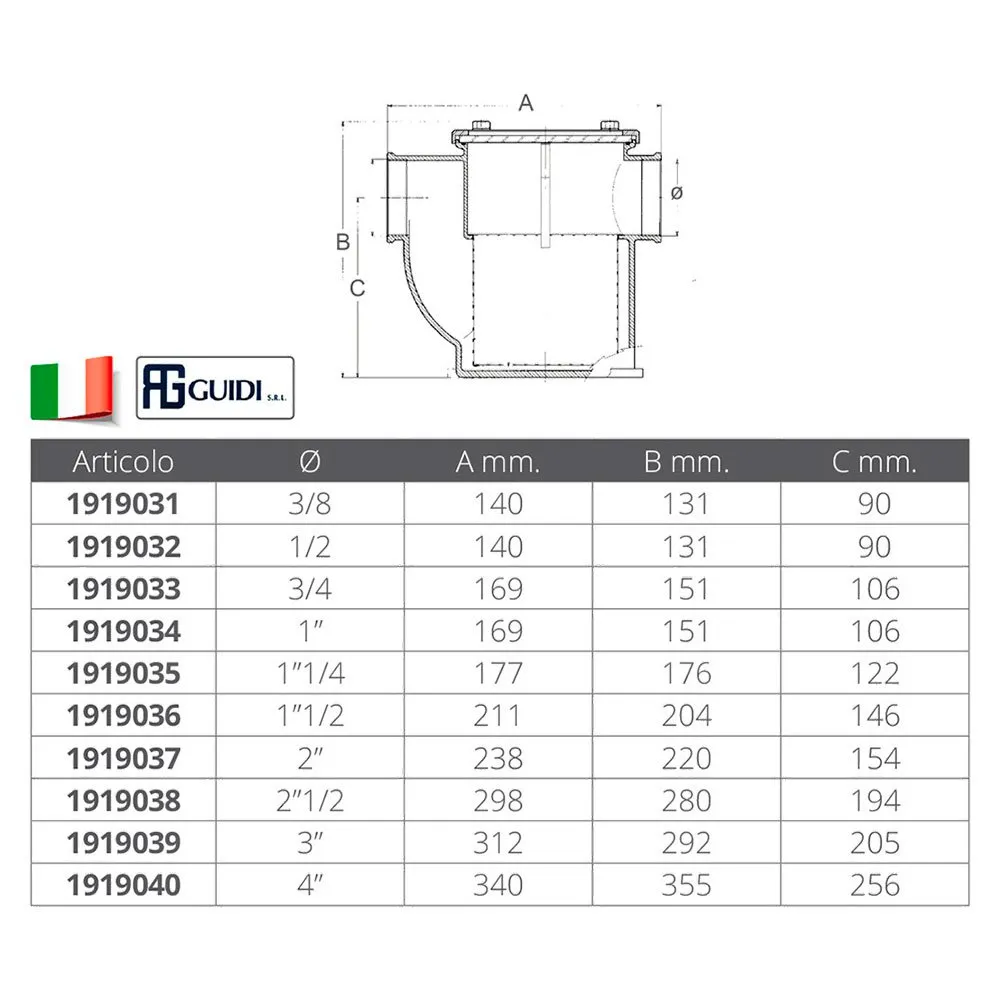 Tekniske spesifikasjoner Guidi Middelhavsvannfilter