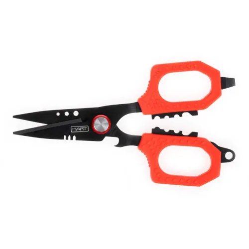 Utover dens eksepsjonelle kutteevne, integrerer HART Multibraid Saks flere avgjørende funksjoner i ett kompakt design. Innebygd i de ergonomiske håndtakene er en kraftig krympefunksjon, som lar deg sikkert feste fortomshylser og bygge sterke, pålitelige rigger uten behov for en separat krympetang. Denne funksjonen er uvurderlig for sportsfiskere som bygger sine egne fortommer for saltvanns- eller rovfiskfiske. I tillegg inkluderer verktøyet en innovativ splittringåpner. Dette spesialiserte punktet er perfekt for å åpne og lukke splittringer, slik at du raskt kan bytte ut treblekroker på hardbaitsene dine eller gjøre justeringer på agnene dine i farten. Dette sparer verdifull tid og forhindrer skade på både agnene dine og fingrene dine. Som en siste touch av bekvemmelighet er en flaskeåpner smart integrert i designet for de velfortjente øyeblikkene med avslapning etter en lang og vellykket dag på vannet.