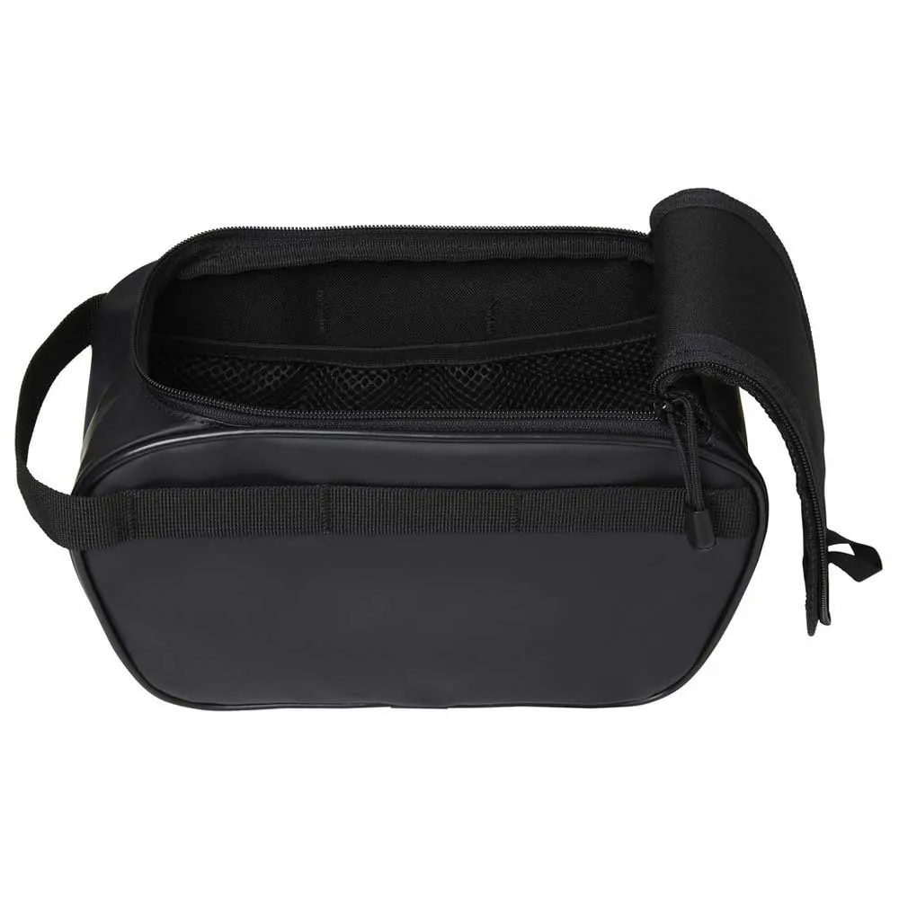 Vanntett toalettmappe med matt finish. Glidelåsåpning på toppen. Meshlomme på innsiden av den ene siden. Plassbehovet er omtrent to esker med vev stablet oppå hverandre. Det er et ideelt format for å ta med deg det viktigste på helligdager, helger eller forretningsreiser.