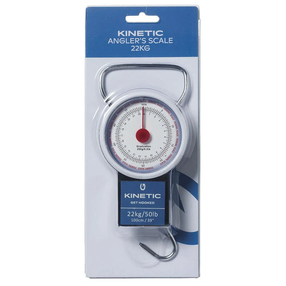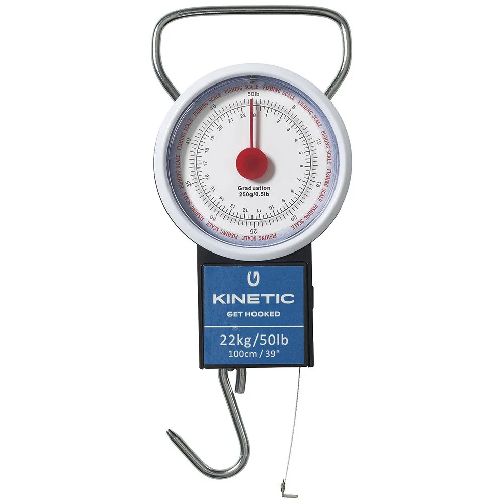 Hold enkelt oversikt over fisk opp til 22 kg og 100 cm med denne praktiske tapen og vekten. Skalaens null kan justeres for presisjonsmålinger. Sammenleggbart håndtak og krok for enkel transport og oppbevaring.