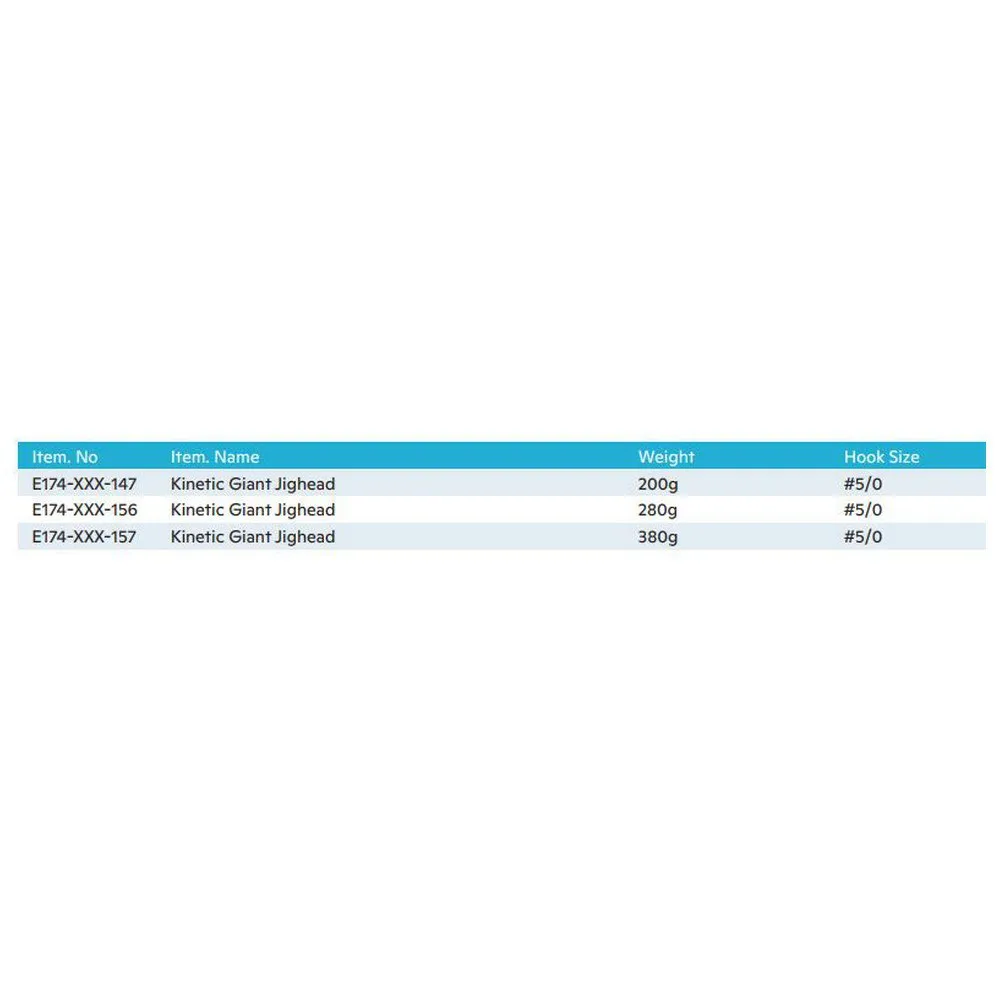 Kinetic Giant Jighead har allerede blitt en favoritt blant profesjonelle sportsfiskere som jakter på megakveite, torsk eller sei. Denne blyfrie mega-shaden har to sett med sterke VMC diskantkroker og tre festeringer for bruk ved drifting eller trolling. Plaststrimler og to haler lar shads leve lenger i farlige nordiske farvann.
