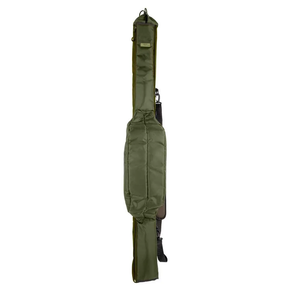 - Har et polstret område designet for å romme to stenger og sneller opp til størrelse 8000, pluss et større bakrom som passer til paraplyer og håver.