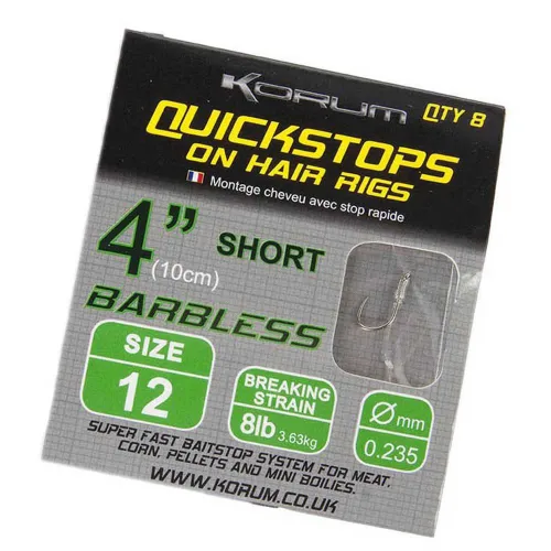 Korum Hair Rigs med Quickstops lar deg raskt bytte agn, uten bryet med å måtte binde dine egne kroklineer! Disse kroklineene er tilgjengelige i både 4" og 15" lengder og krokstørrelser 10-16 og med og uten mothake.