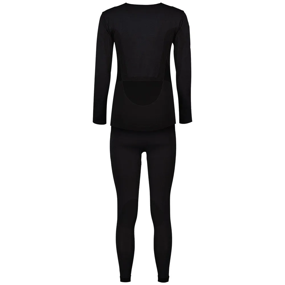 Dette dameklessettet inkluderer en langermet topp og matchende leggings, begge designet for å sitte tett og bevege seg med kroppen din. Det toveis stretchmaterialet gir eksepsjonell komfort og fleksibilitet, mens flatlock-sømmene forhindrer gnagsår og irritasjon. Best av alt, den svarte fargen og den diskrete designen gjør dette baselaget utrolig allsidig, slik at du kan bruke det alene eller legge det under jakker og annet utendørsutstyr.