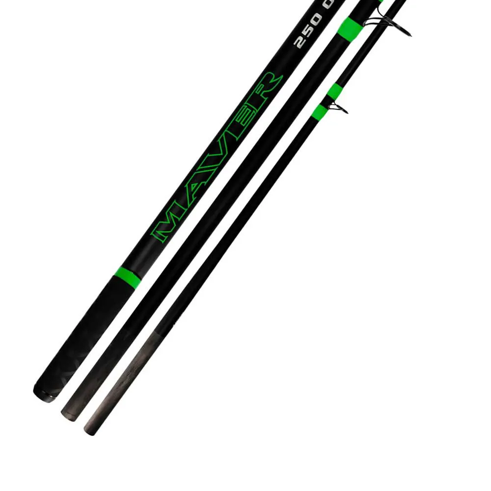 MAVER Eclipse Surfcasting-stangen i svart og grønt er en slitesterk fiskestang av høy kvalitet som er spesielt utviklet for surfcasting. Stangen har et elegant svart og grønt fargeskjema som ikke bare ser flott ut, men som også gir utmerket synlighet når du kaster ut på vannet.