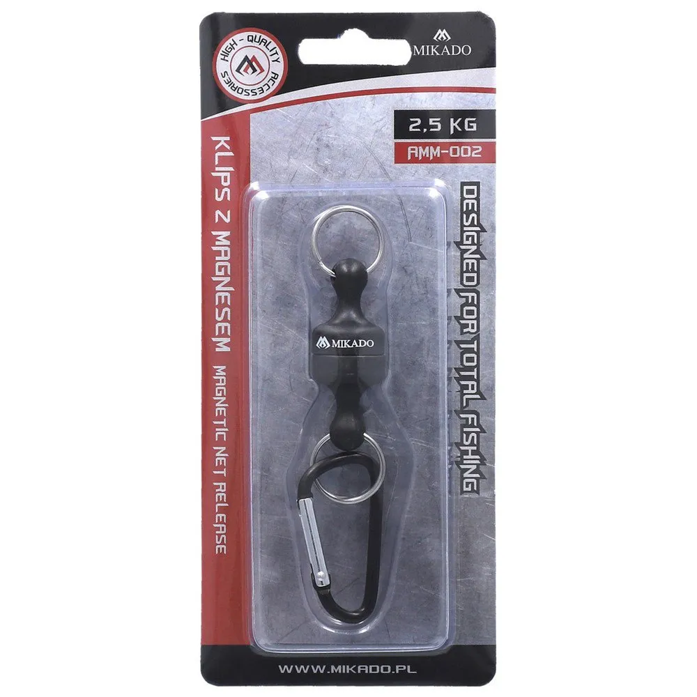 Universell magnetisk klips med en forbindelse som den kan festes til nettet, tang, mål eller annet tilbehør. Magnet av god kvalitet kan holde et lite nett, men kan slippes ut med et kraftig trekk.