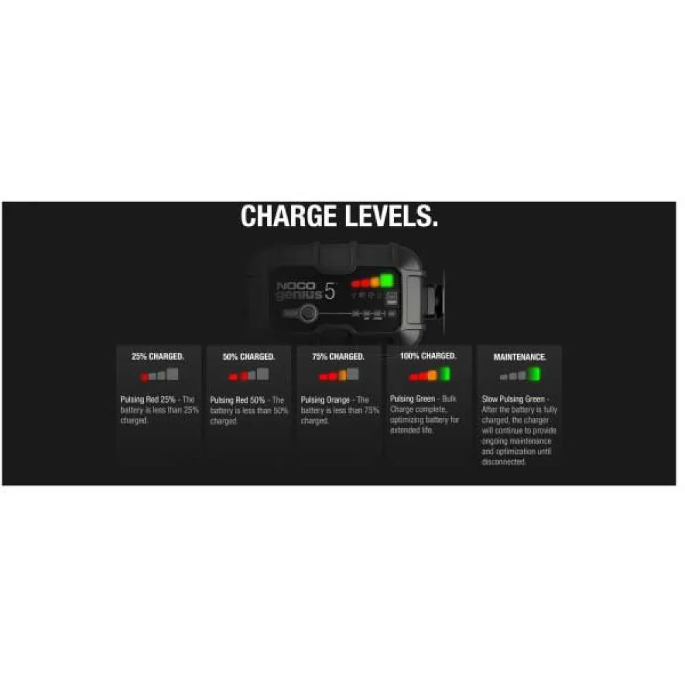 Produktbeskrivelse av Noco Genius 5 batterilader 5A