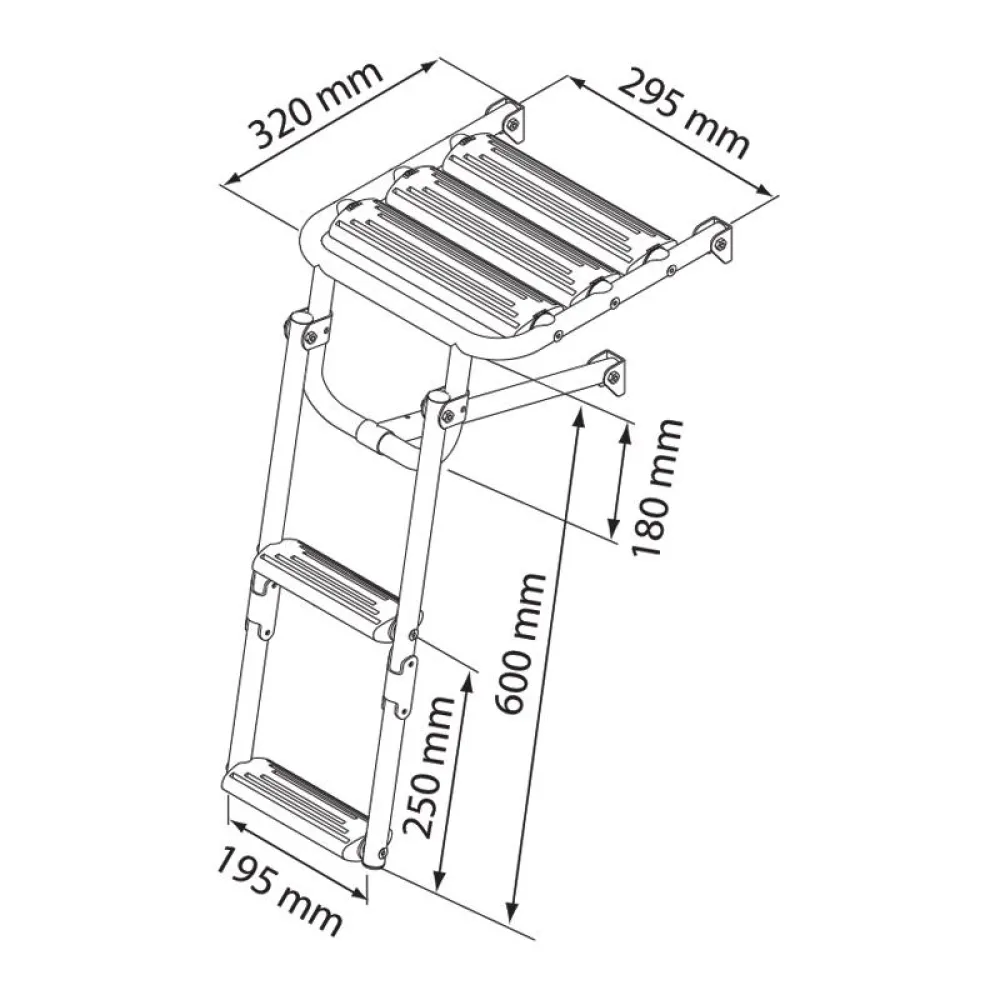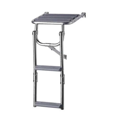 Plasseffektiv Design: Stigen foldes kompakt på plattformen, og bevarer verdifull dekksplass og opprettholder de rene linjene i båten din. Universell bruk: En allsidig design som er egnet for montering på akterspeilet eller badeplattformen på et bredt spekter av båter, inkludert motorbåter, seilbåter og RIB-er.