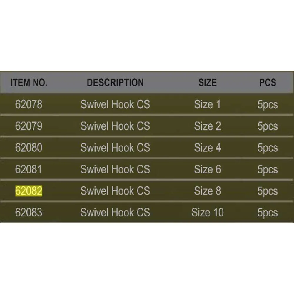PROLOGIC Swivel CS Hook er en høykvalitets fiskekrok som er designet spesielt for bruk i ulike fisketeknikker. Kroken har en holdbar konstruksjon med en skarp spiss som lett kan trenge inn i fiskens munn for sikre kroksett.