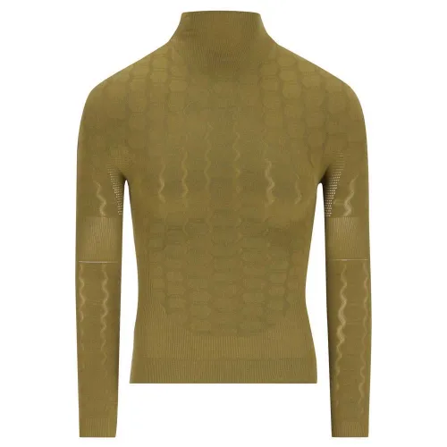 Konstruksjonen av dette langermede basislaget er et mesterverk av tekstilteknikk. Ved hjelp av en proprietær varpstrikkeprosess er plagget fullstendig sømløst, og eliminerer potensielle gnagsår og skaper en ekte andrehudspassform. Denne avanserte teknikken muliggjør opprettelsen av kroppskartlagte soner med varierende tetthet. Åpne nettingmønstre er plassert i områder med mye svette for å maksimere pusteevne og fukttransport, mens tettere strukturer gir støtte og forbedret isolasjon der det er mest behov for det. Resultatet er et svært elastisk plagg som beveger seg med deg, og gir ubegrenset bevegelsesfrihet.