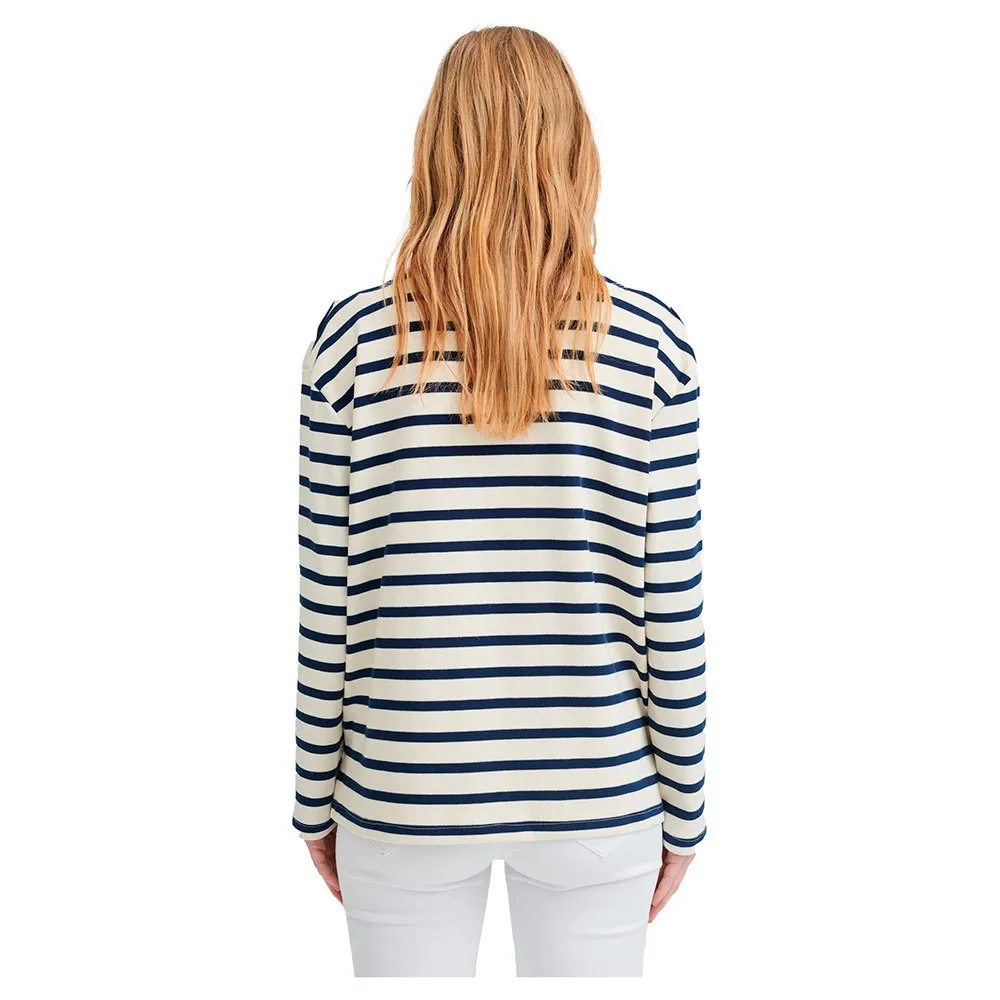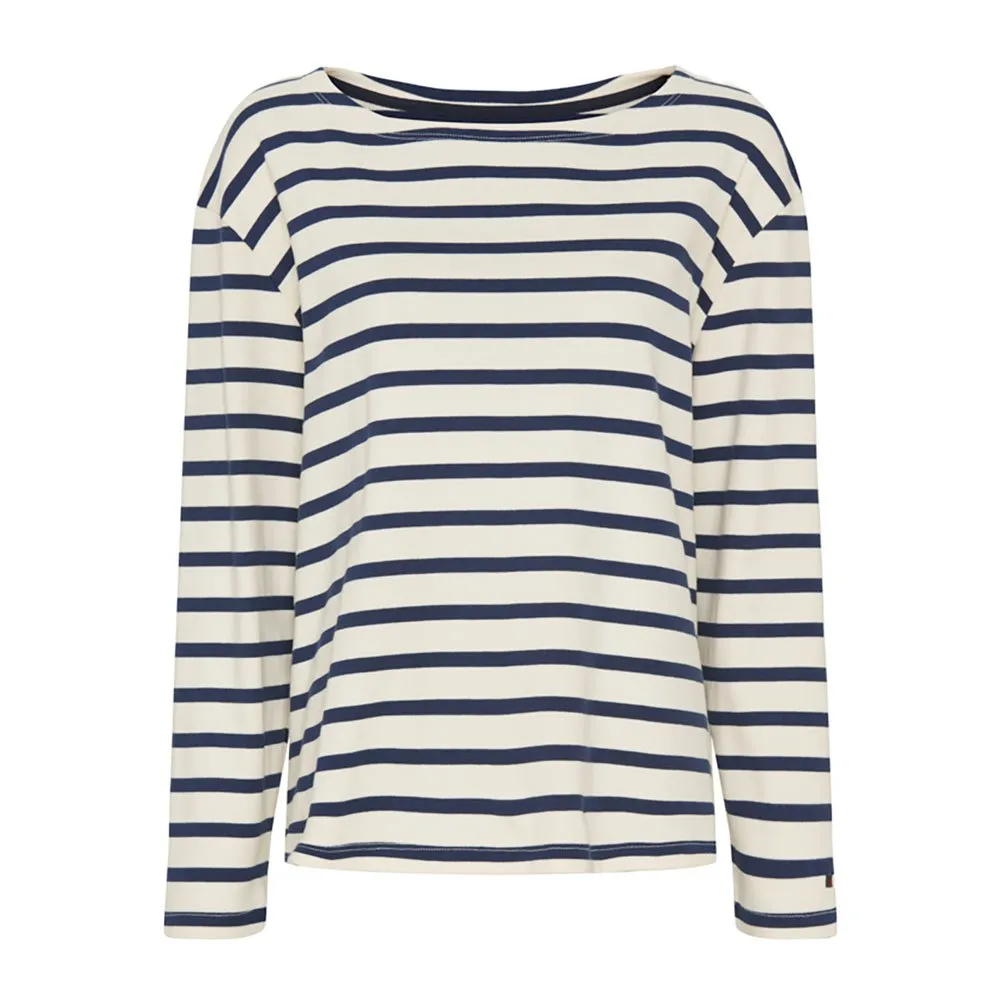 Klassisk og maritimt inspirert, langærmet t-skjorte, laget i 100% bomull, noe som gjør den veldig myk å ha på seg. Stilen Claudia er et must i enhver garderobe. Vi anbefaler å style t-skjorten med vår vest Steffi eller våre Macha-leggings.
