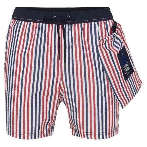 Seersucker badeshorts med kontrastfarge på livrem.