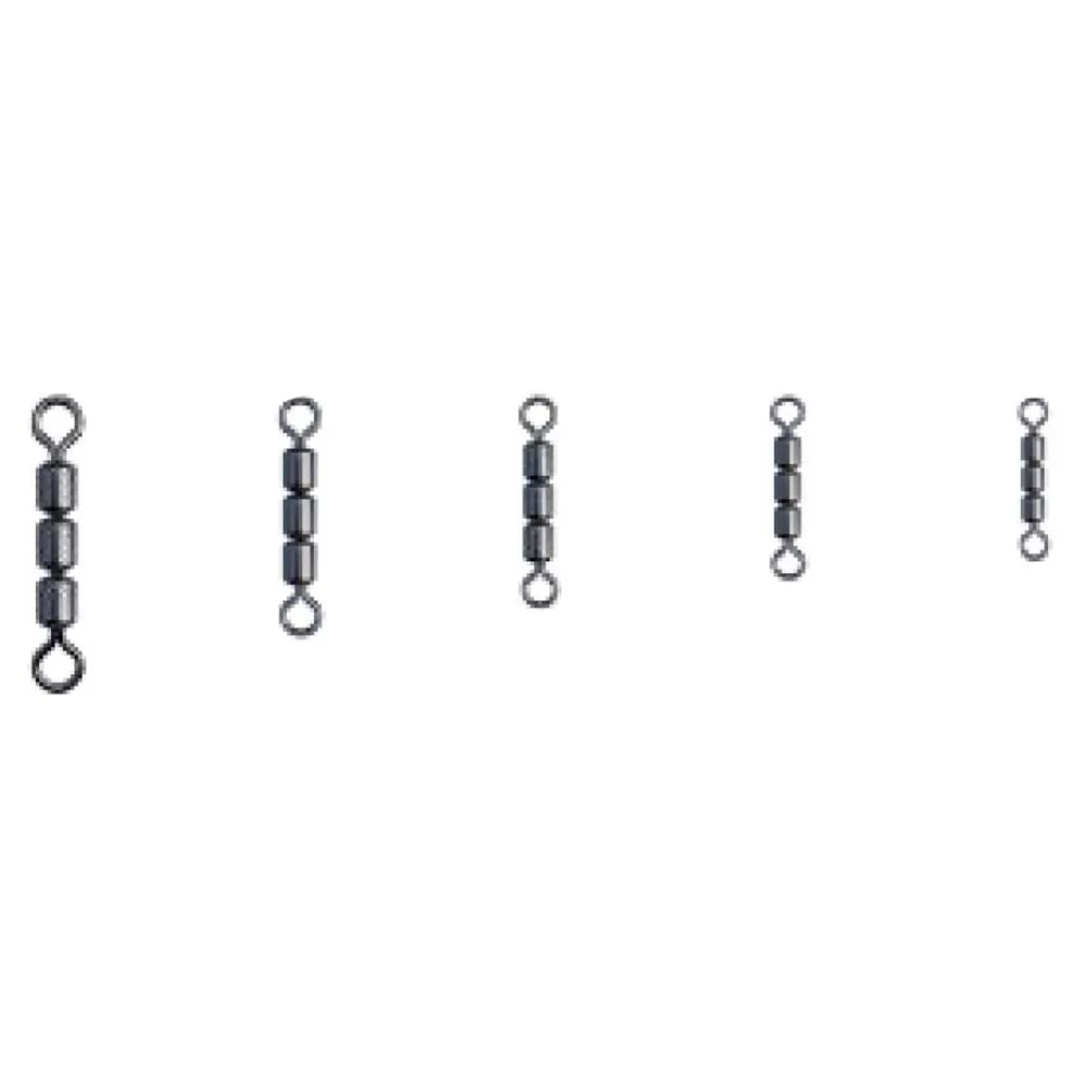 En annen viktig fordel er den ultra-glatte rullende handlingen til hvert øye. Denne funksjonen er avgjørende for å forhindre snøretvinning, et vanlig problem som kan svekke snøret ditt og ødelegge presentasjonen, spesielt når du fisker i sterke strømmer eller henter inn spinnende sluker. Den flytende 360-graders rotasjonen sikrer at snøret ditt forblir rett og sterkt, bevarer dets integritet og lar agnet eller sluken bevege seg naturlig og lokkende i vannet. Ferdig i en diskret svart farge, tilbyr disse svivlene en snikende presentasjon ved å minimere glimt og synlighet, noe som gjør dem ideelle for å målrette mot sky og snøresky arter under klare vannforhold.