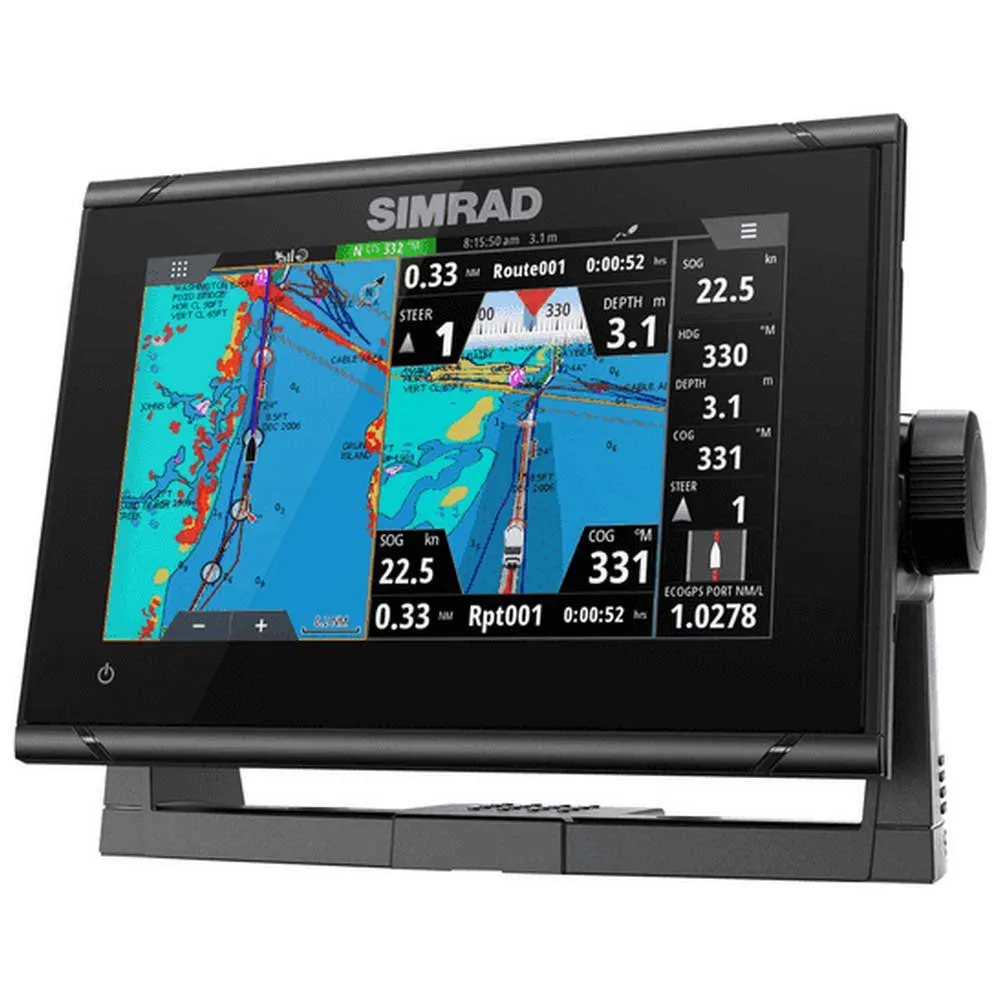 Simrad GO-serien er designet med tanke på båtliv, og tilbyr en unik Cruise Charting-side som samler viktige navigasjonsdata og diagrammer i en enkelt lesbar skjerm.Spenning,