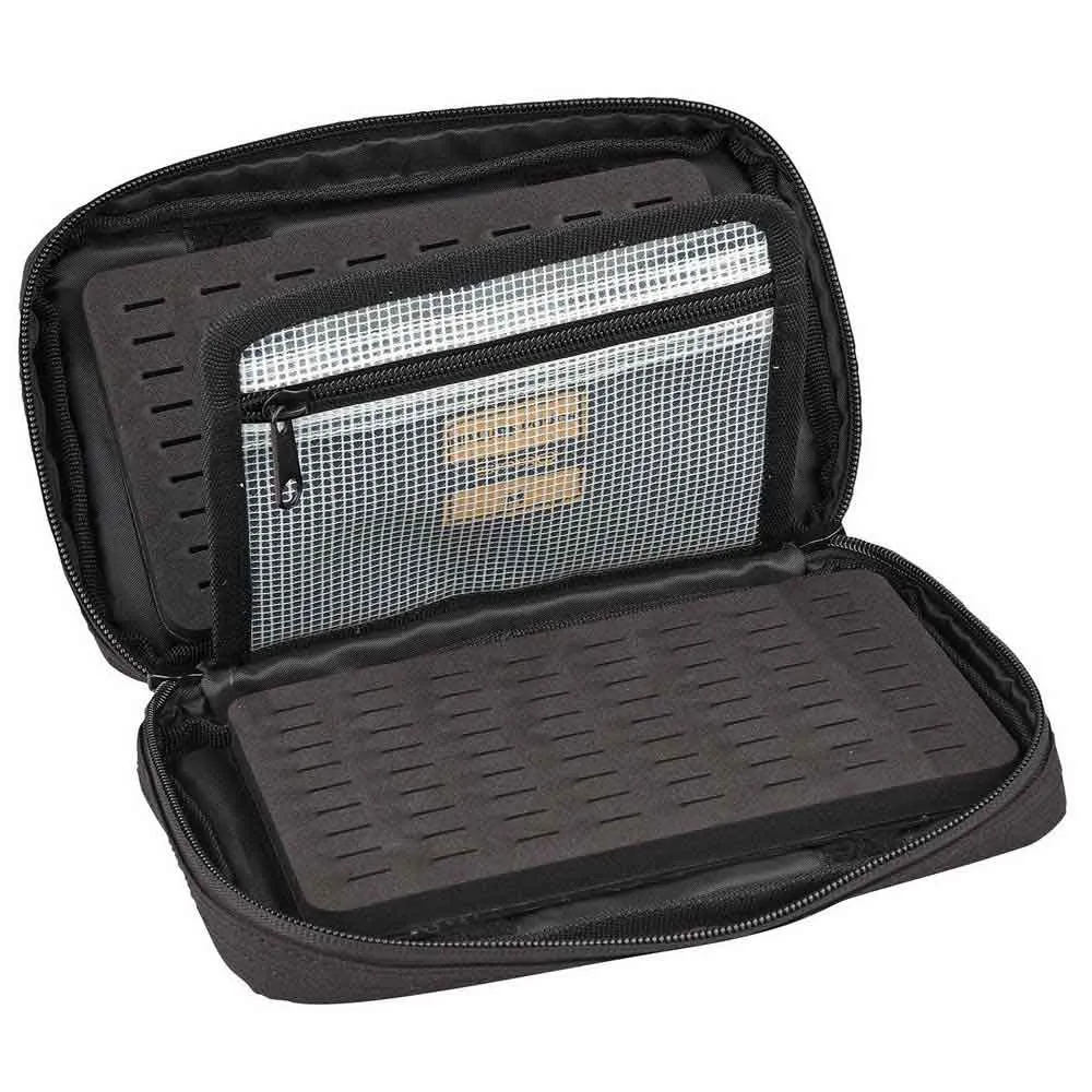 En hendig veske for oppbevaring av riggede sluk, kroker og jigghoder. Slukposen kan festes til et belte eller kobles med en karabinkrok på en hvilken som helst SPRO-veske. I midten er det en dobbeltsidig hylse for trykknapper, svivler og andre terminalutstyr. Posen er ideell for å lagre utstyret ditt i én økt, så alt er tilgjengelig når det trengs.