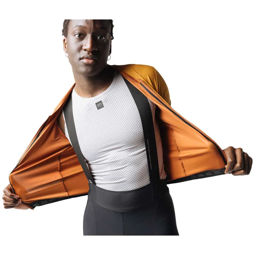 Sleeveless Base Layer er et viktig plagg for alle syklister som ønsker å holde seg tørre og komfortable under syklingen i varmt vær. Laget av resirkulert polyester og elastan, er stoffet designet med hulfibre som holder huden tørr ved å transportere bort svette fra kroppen. Dens lette og myke overflate gir utmerket komfort.