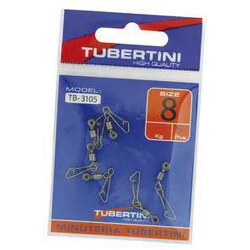 TUBERTINI TB 3105 Snap Swivels er tilgjengelig i forskjellige størrelser for å imøtekomme ulike fiskeanvendelser og senestyrker. Velg størrelsen som passer best til målarter og fiskestil. Disse svirvlene er kompakte og lette, og legger minimalt til bulk i fiskeutstyret ditt. Deres slanke design sikrer at de ikke vil forstyrre agnets bevegelse, slik at de kan yte optimalt.