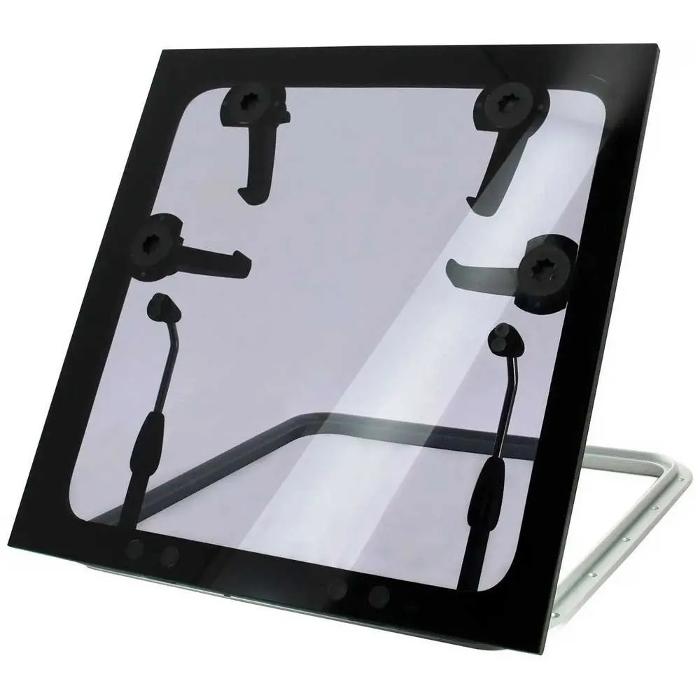 Den flush designen reduserer vindstøy og er enkel å rengjøre. VETUS-klemmene lukker luken tett, noe som gjør denne luken egnet for designkategori A, område II-plasseringer. Den polerte og anodiserte aluminiumsrammen er både stilig og vedlikeholdsfri. FGHF-luker er konstruert for utskjæringer med en hjørneradius på 43 mm og er tilgjengelig fra lager i dimensjonene nevnt nedenfor.