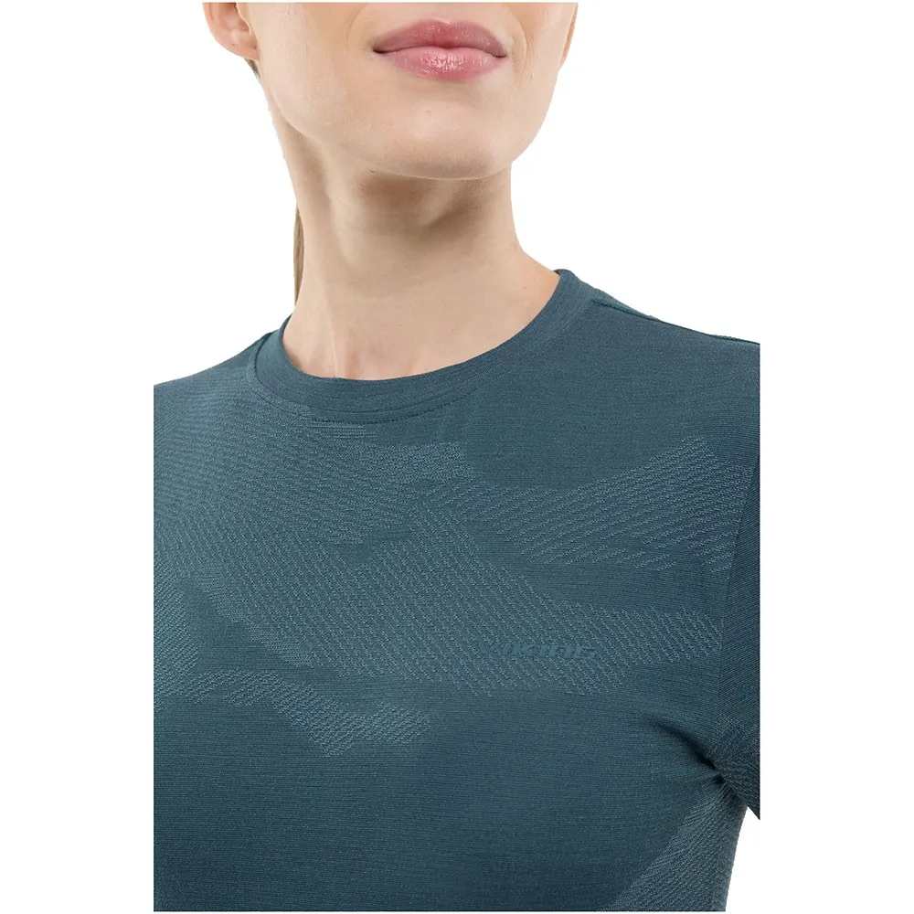 Dens avanserte termoregulering, holdbarhet og fleksibilitet oppnås gjennom en premium blanding av merinoull, polyester, polyamid og elastan.